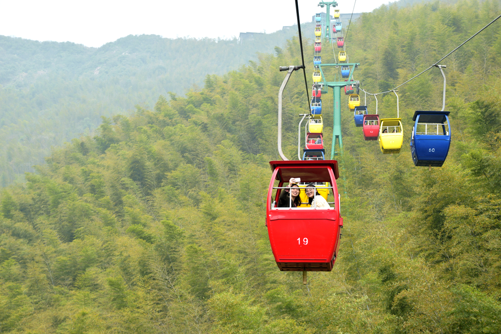 隨著如畫春色徐徐展開,一行人到達旅行的第一站,有著“天堂南山,夢幻竹海”美譽的溧陽南山竹海風景區。一望無際的毛竹倚山抱石,鏡湖巒影中的排排竹筏,山間徑旁的潺潺溪流和形態各異的竹木小屋,一派古樸、原始、自然的清新意境。蜿蜒的山路并沒有阻止大家向上的腳步,不畏攀登艱勞,努力跨越沿途障礙,收獲了諸多樂趣。