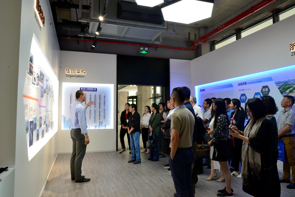副總經(jīng)理錢蘇醒陪同賓客參觀了巨人企業(yè)館,向參觀者介紹了企業(yè)發(fā)展歷程以及技術(shù)概況、智能制造、安裝服務(wù)和產(chǎn)品構(gòu)成,讓大家對(duì)巨龍電梯傳承巨人電梯創(chuàng)業(yè)歷程的前世今生有了深入了解。昂立于巨人工業(yè)園內(nèi)的電梯試驗(yàn)塔,高達(dá)188米,代表著南潯“電梯之鄉(xiāng)”的新高度,也代表著巨龍電梯的新未來(lái),倍受參觀者矚目。