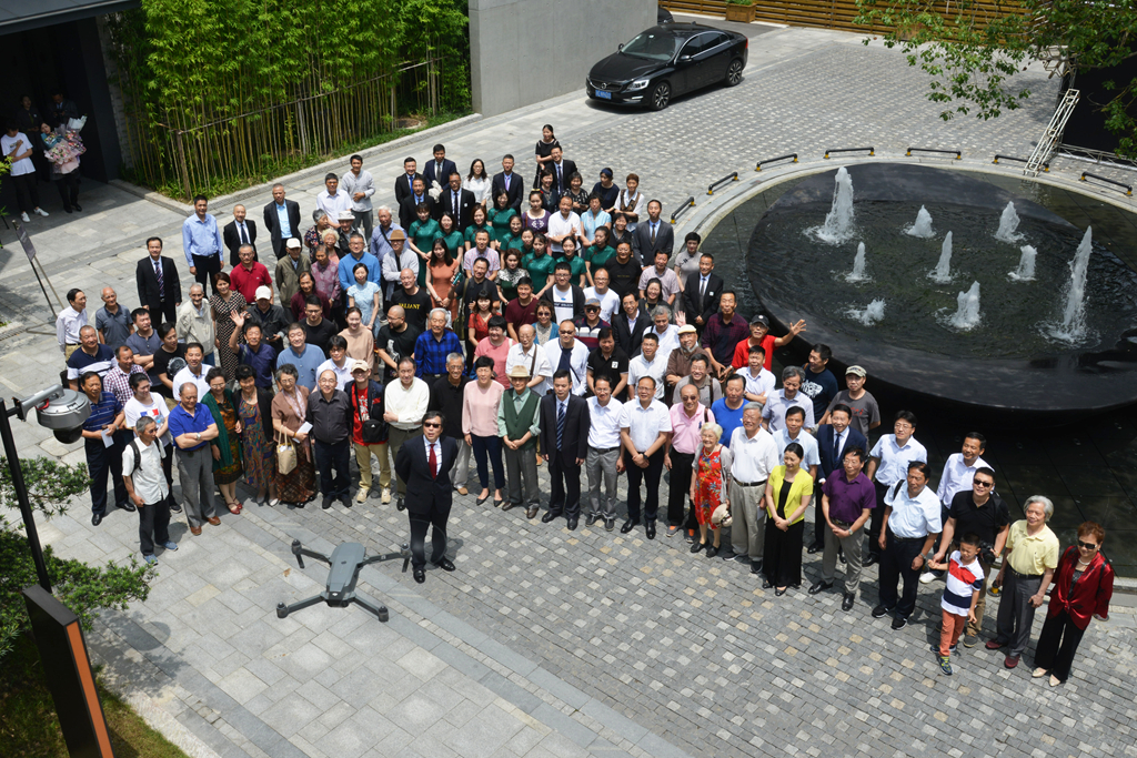 中共湖州市委常委、宣傳部部長范慶瑜宣布莊弘醒美術館開幕,江浙兩地的領導、藝術家與莊弘醒先生、巨人集團錢江董事長聯袂為開幕式剪彩并且合影。