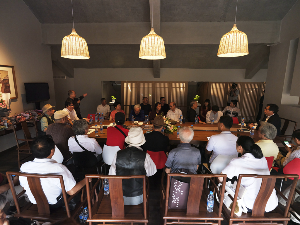與會代表饒有興致地參觀了莊弘醒美術館;江浙兩地藝術家、鄉賢及莊弘醒先生故交歡聚一堂,進行了座談交流。大家由衷贊嘆莊弘醒先生作品的藝術成就和家鄉情懷,美術館的空間格局與藝術品位也給參觀者留下了深刻印象。