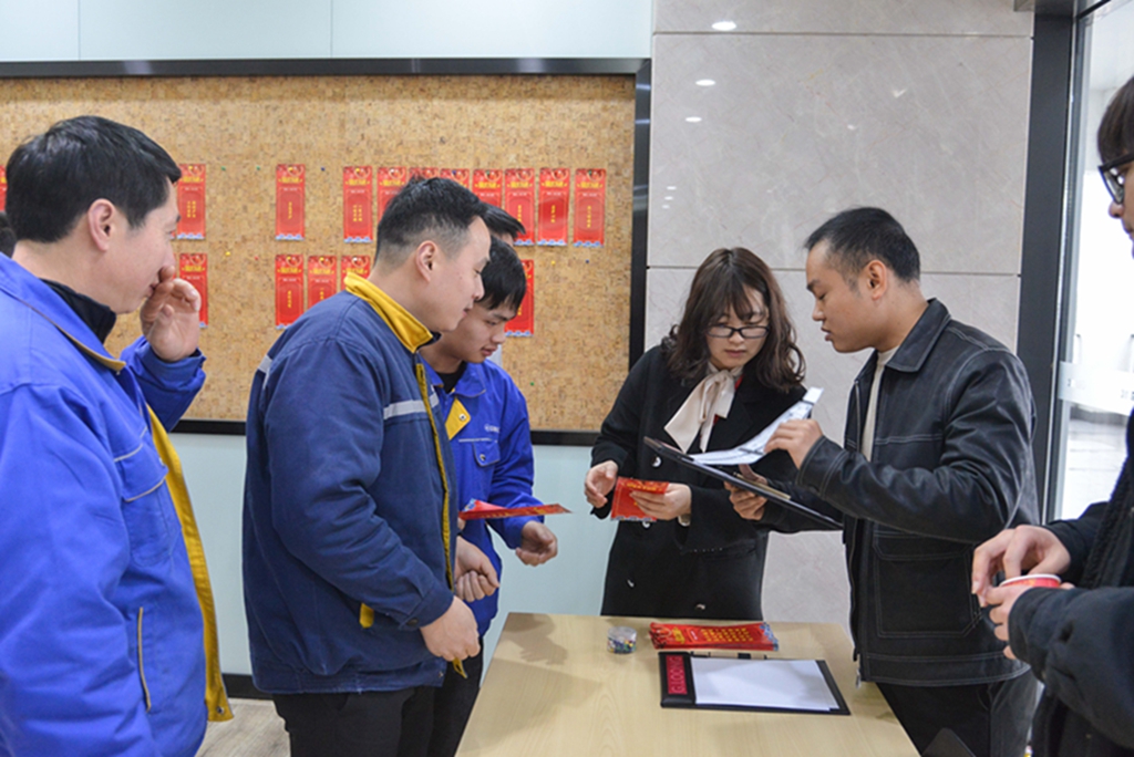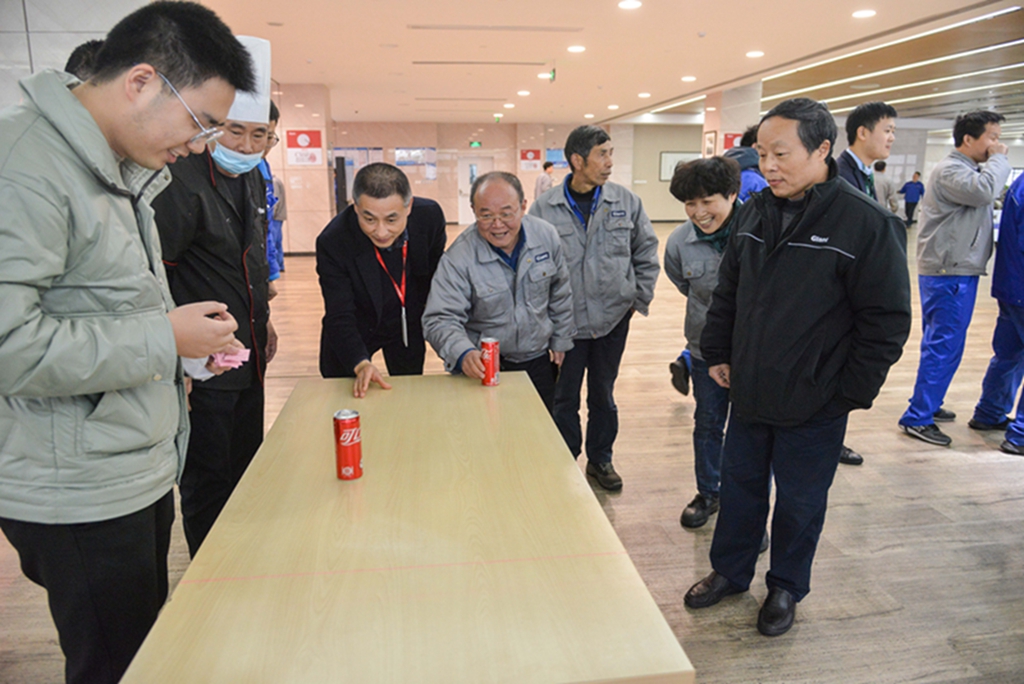 “加油、加油”,一片熱烈的應援聲中,“推推樂”拉開了活動序幕,大家緊盯著一聽飲料,只見它被參賽者從桌子一端推了出去,卻在離終點線毫厘之差的地方“踩了急剎”,惹得大家一聲嘆息。狀況百出的“抽抽樂”收獲了一片歡聲笑語,兩個紙杯中間的紅紙成為獲勝關鍵,員工們紛紛摩拳擦掌,躍躍欲試。“猜燈謎”作為活動重頭戲,現場更是人群涌動,字謎內容集知識性、趣味性和思考性于一體,吸引大家踴躍參與,員工們或低頭深思,或激情討論,猜中的員工展露笑容、興高采烈地兌獎,活動現場激情高漲。