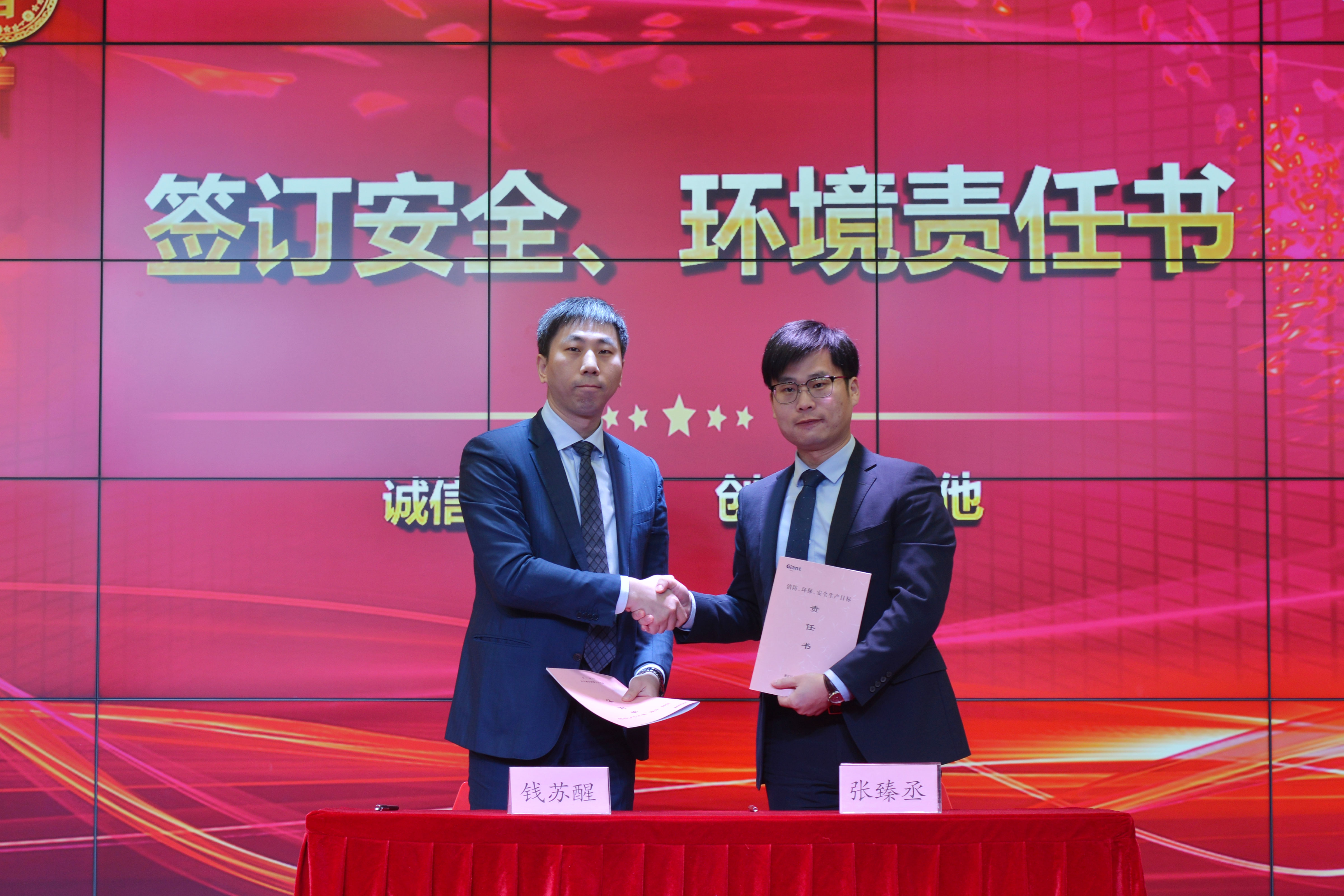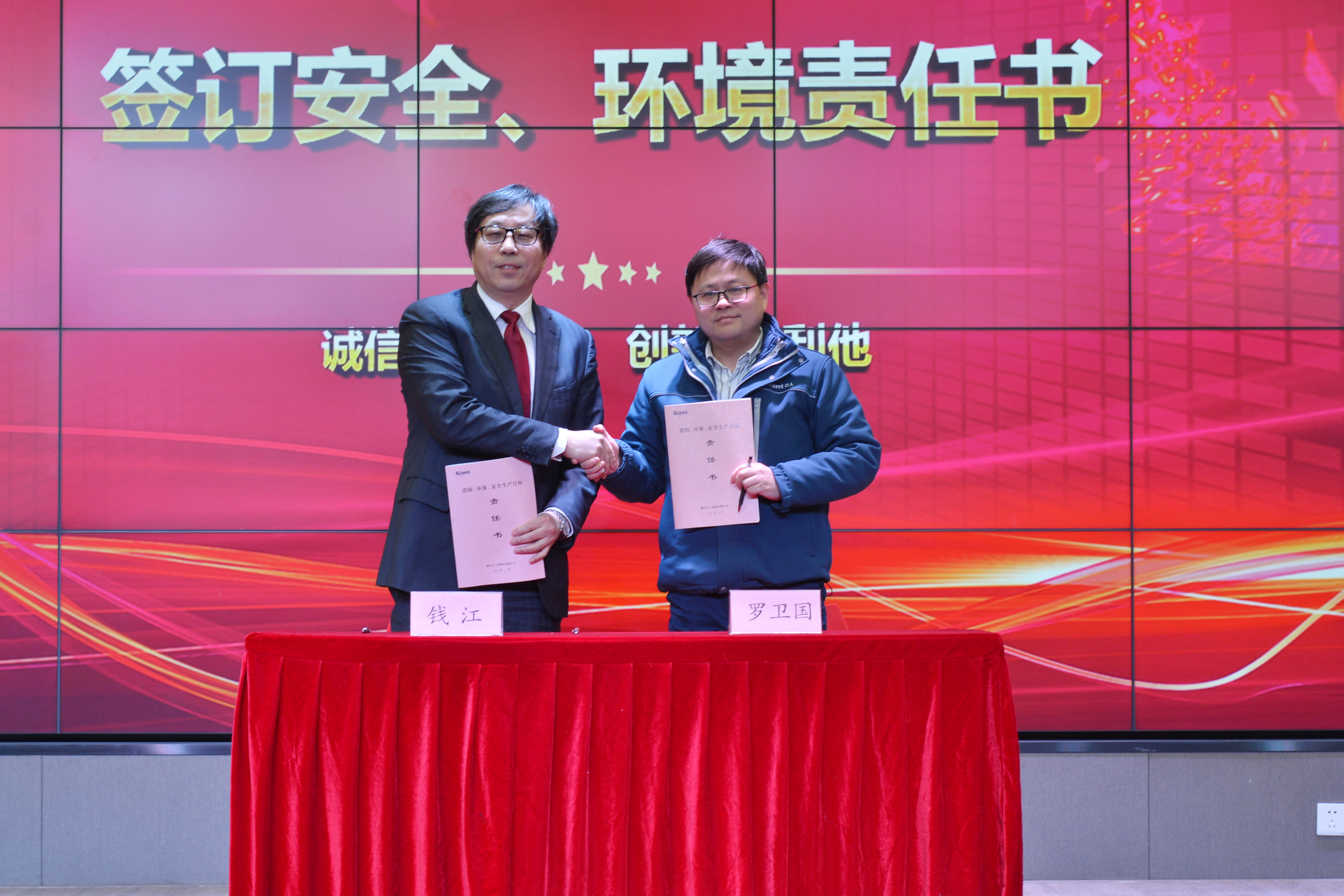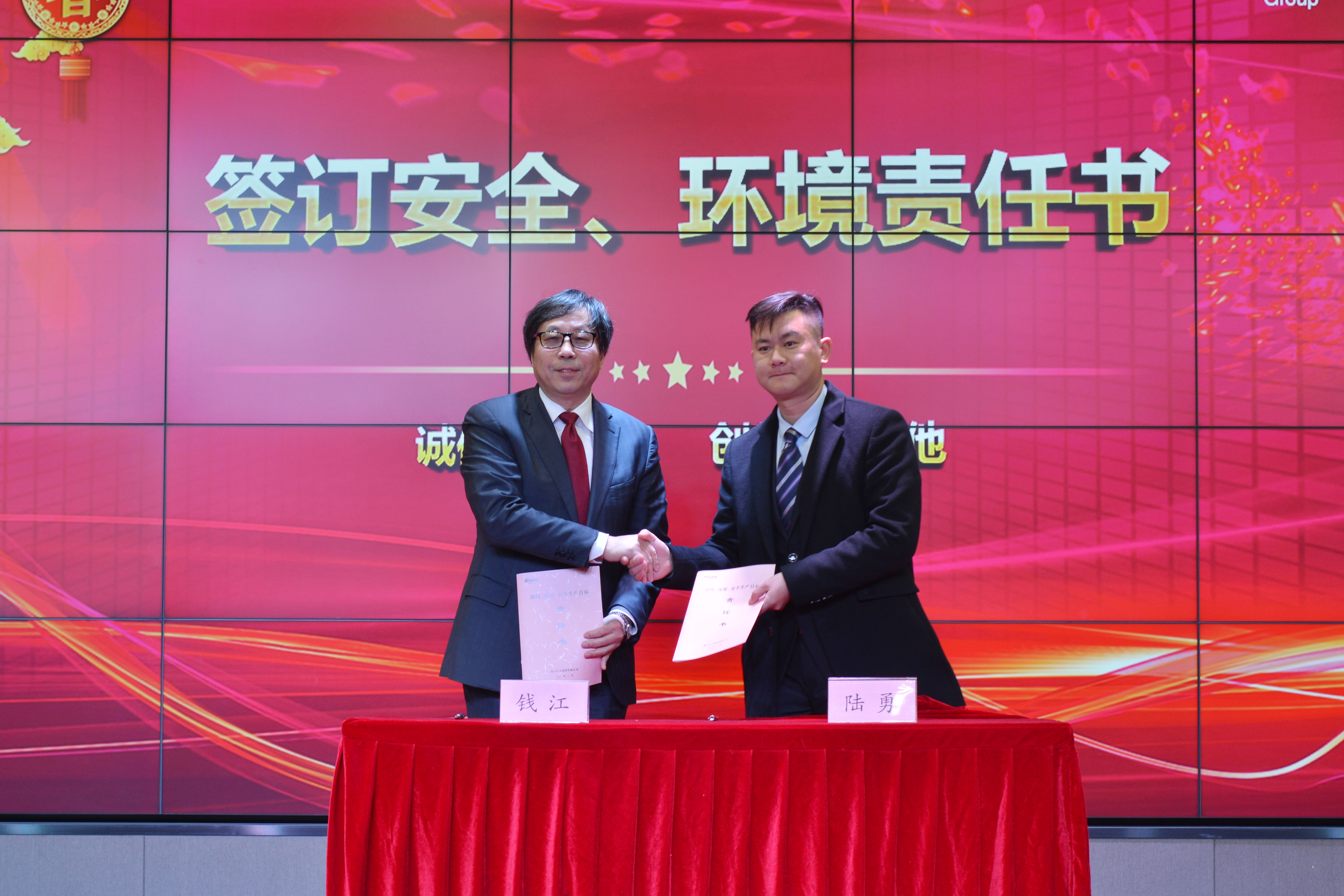 安全生產(chǎn)管理守護著員工物心幸福與生命健康以及企業(yè)社會責任,是公司頭等大事,大會舉行年度安全責任書簽訂儀式,公司副總經(jīng)理顧惠江作安全與環(huán)境教育宣講。