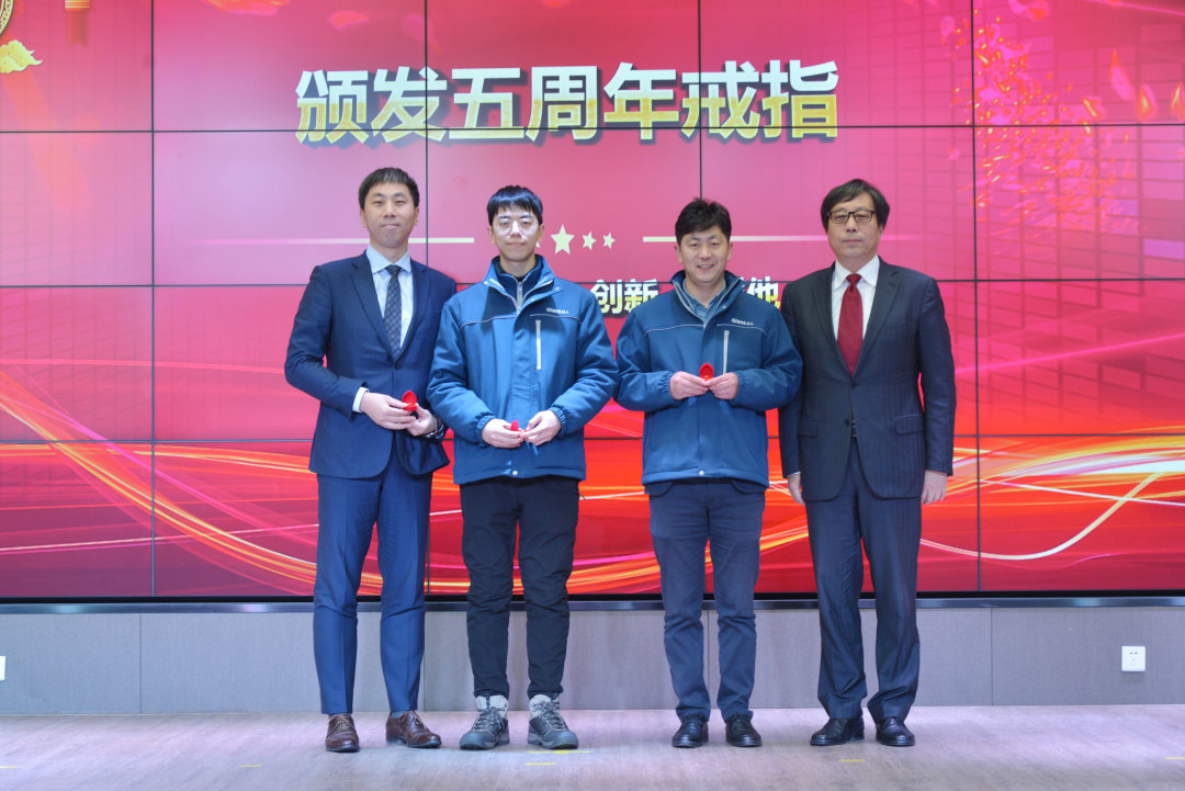 公司的進步發(fā)展,離不開全體員工的默默奉獻,更需要優(yōu)秀員工和先進團隊的努力奮斗和表率作用,大會對2021年度25名“優(yōu)秀員工”和兩個“先進集體”進行了表彰。遵循公司傳統(tǒng),大會為入職五周年員工頒發(fā)“紀念戒指”。